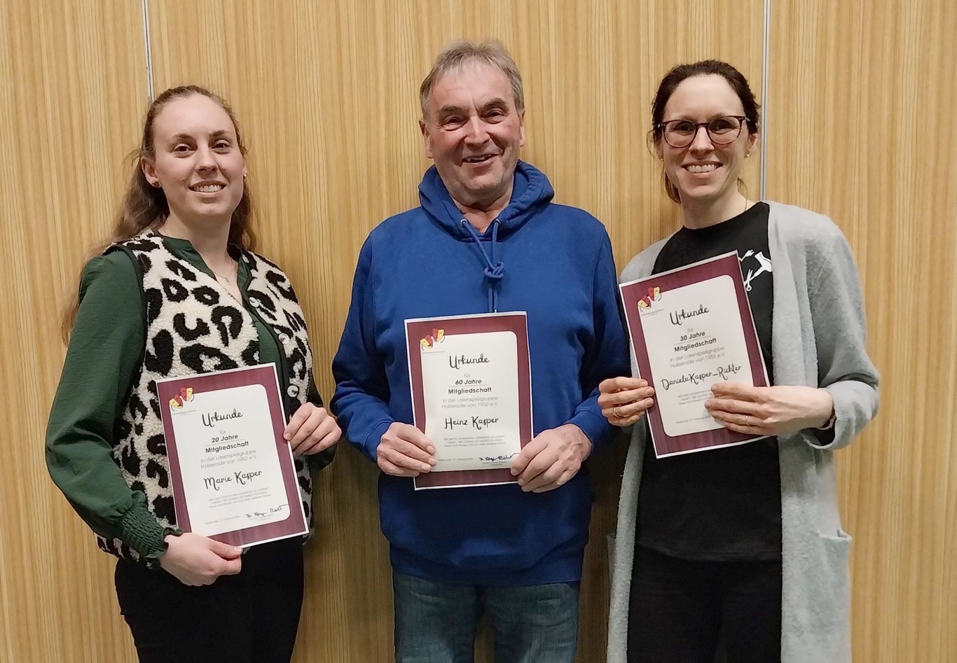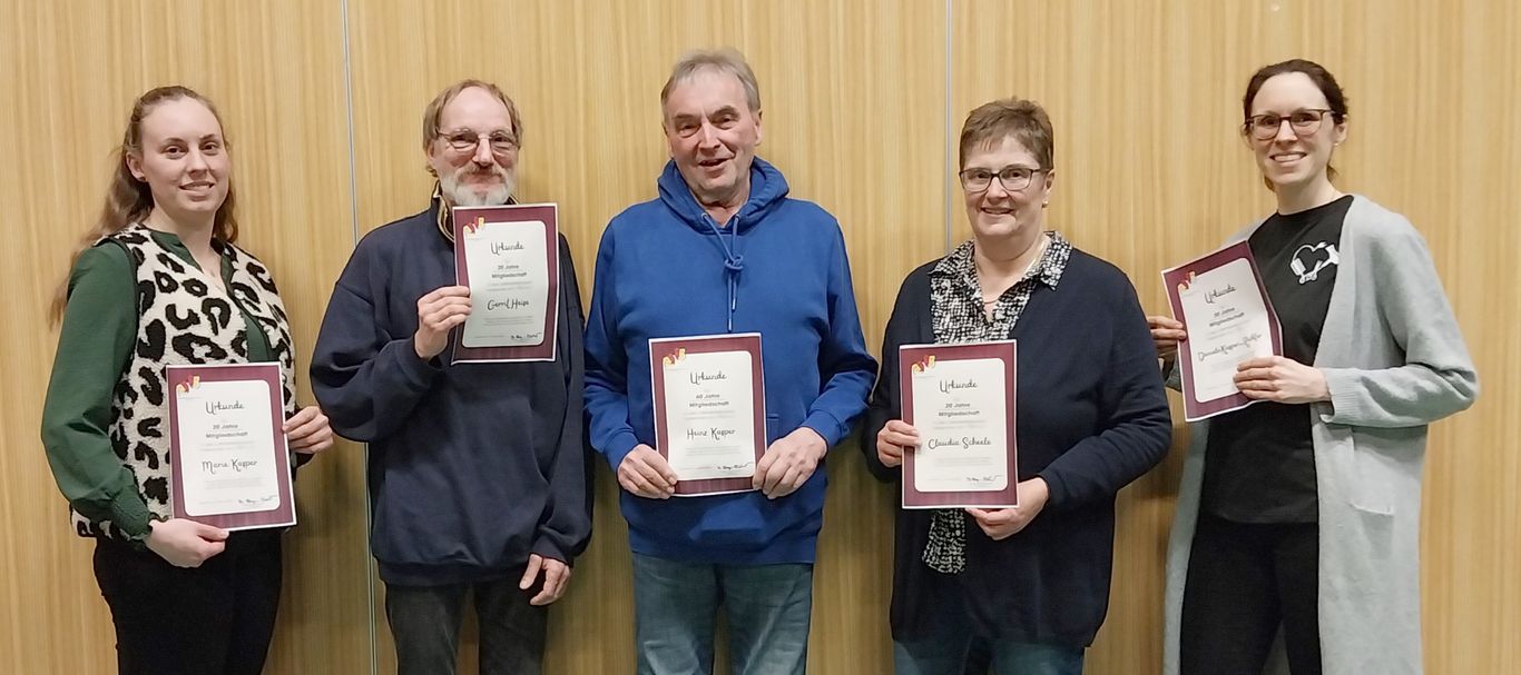 Für 20 Jahre wurden Marie Kasper, Gerrit Heise und Claudia Scheele geehrt. Bereits seit 30 Jahren ist Daniela Kasper-Richter für den Verein tätig. Ein wahres Urgestein ist jedoch Heinz Kasper. Er ist seit sage und schreibe 60 Jahren mit von der Partie. Wir gratulieren herzlich.